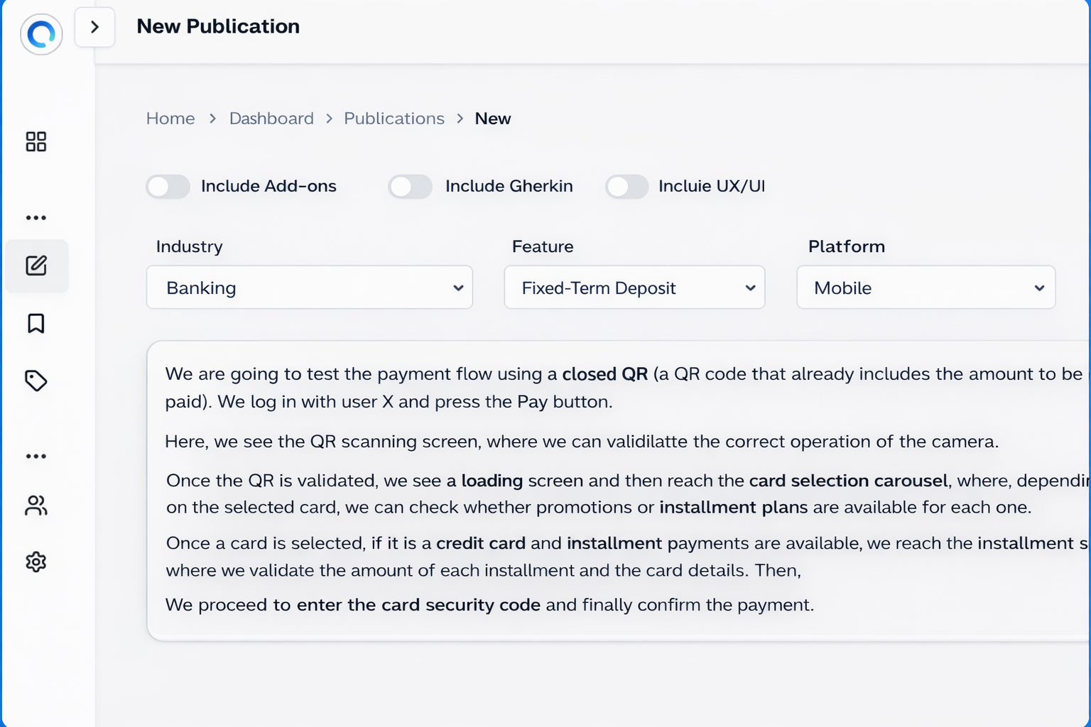 Design, run, and optimize your tests with the power of AI. Qualis Lab AI is transforming software testing. Our tool turns your designs and user flows into positive test cases, alternative scenarios, and accessibility criteria—delivering higher-quality software in less time.